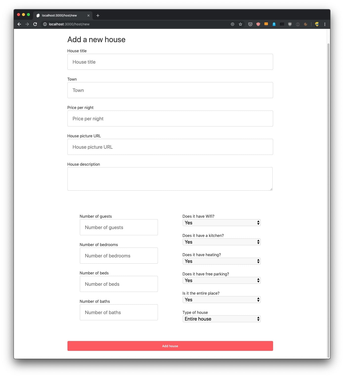 This project will be full-stack: frontend and backend, with server-side rendering and routing. It’s going to have a huge set of features: browsing homes, reading reviews, logging in, booking a home, having the logic to determine if dates are already booked, paying the stay using Stripe, and then becoming hosts, adding our own homes with all the details, and selling them!